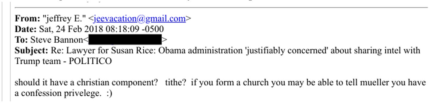 A new coalition would be needed to outmaneuver the MeToo political fallout that, alongside the family separation immigration policy, was splintering “the evangelical vote.” They ping-ponged ideas to salvage the situation. On February 24, 2018, Epstein wrote: