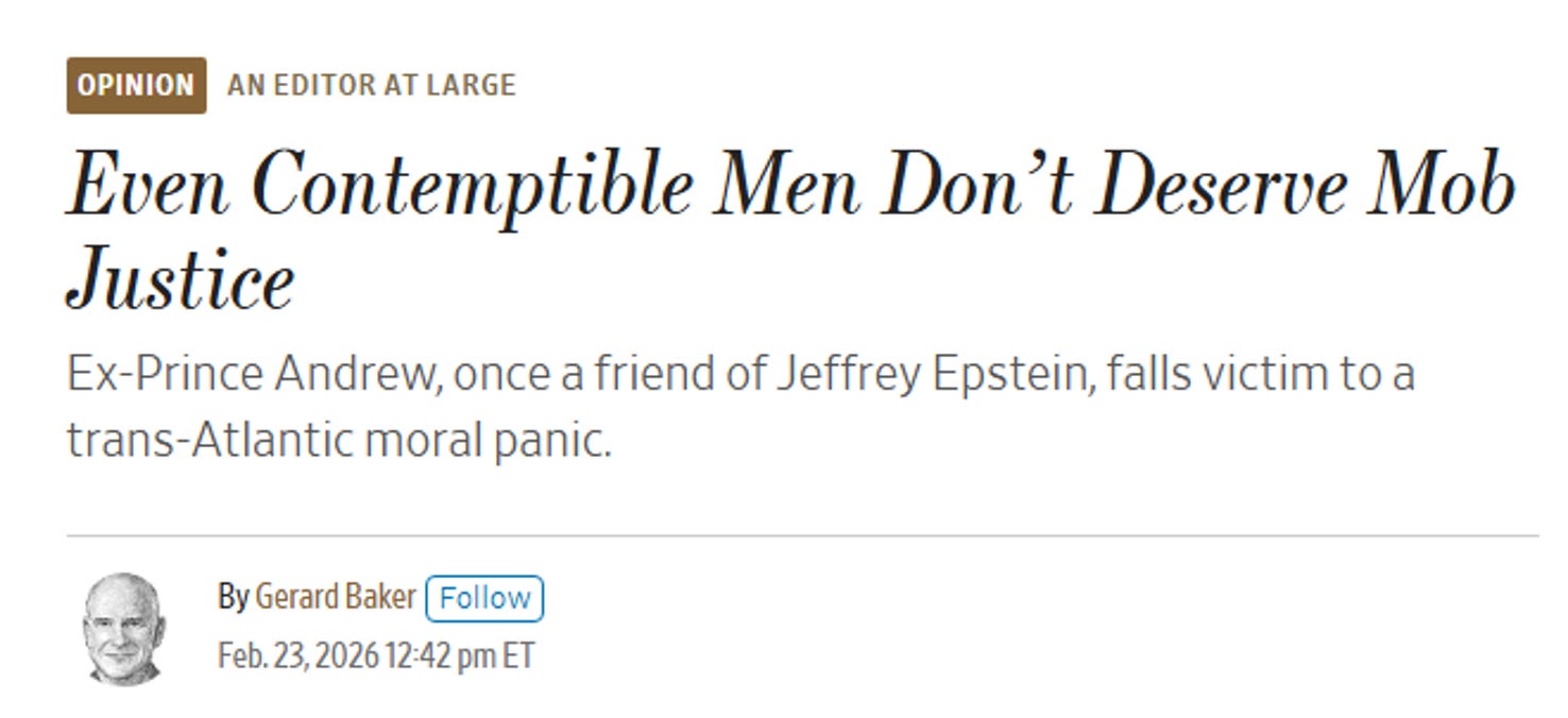 · February 2026: Ten years after the “Access Hollywood” tape was called “locker room talk,” publications including The Wall Street Journal are running pieces buffering Epstein revelations:
