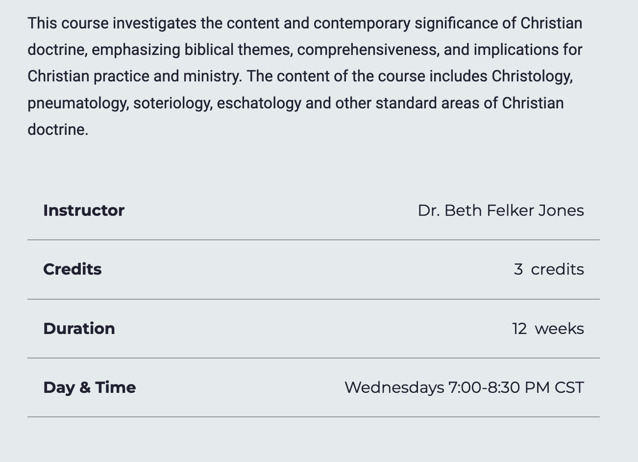 Enroll in my Seminary Now online course on Christian doctrine, through which you can earn seminary credit.